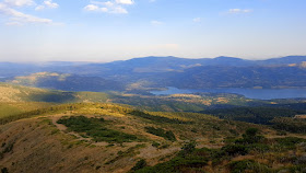 Después de un ratito por aquí nos disponemos al último achuchón de unos 4 km, hasta el Puerto de Navafría, donde vivaquearemos, entre tanto pasaremos por el Alto del Puerto con unas magnificas vistas del cordal que afrontaremos el día siguiente, acometemos el pronunciado descenso por el cortafuegos hasta el Puerto de Navafría, con mucha piedra suelta y mal caminar quizás lo notamos mas por el acumulado que ya llevamos de casi 30 km, una vez ya por la zona baja, dejamos el cortafuegos justo a la altura de unos carteles que indican, al área recreativa las Lagunillas, donde nos espera una bonita pradera, y una fuente con dos chorros soltando agua por ambos, zona para asearnos, adecentarnos, y reponer cantimploras, entre tanto un zorro nos ronda para ver cuando la abandonamos y él pudiera beber, después de un rato y a punto de expirar el sol, ascendemos por el asfalto al Puerto de Navafría, una vez aquí, recuperamos nuestra botella de 6 litros de agua que habíamos ocultado entre matorrales y nos buscamos un buen lugar alrededor del Refugio de Navafría para cenar y vivaquear.